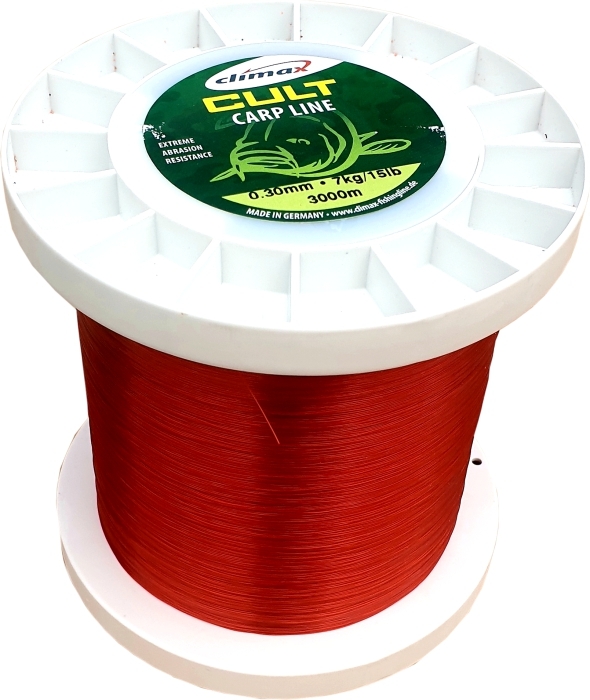 Neviditeľné rybárske silony s extrémnou pevnosťou v uzle, červený Climax sa vďaka svojej farbe stráca už v hĺbke 1 až 2 m, vlasec Climax Carpline je extrémne odolný voči oderu.