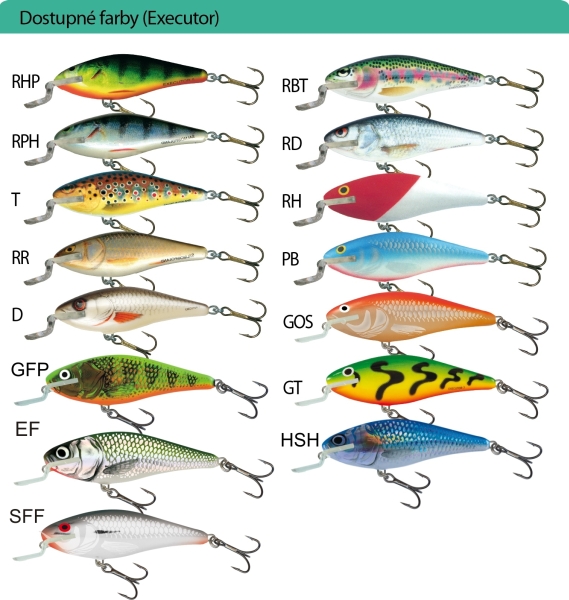Rybársky wobler EXECUTOR, rada týchto woblerov sa vyrába v rôznych prevedeniach-plávajúci, hlboko potápavý, stredne potápavý. Podľa veľkosti je ho možné použiť na lov menších dravcov-ostriež, pstruh alebo väčších dravcov ako je šťuka.