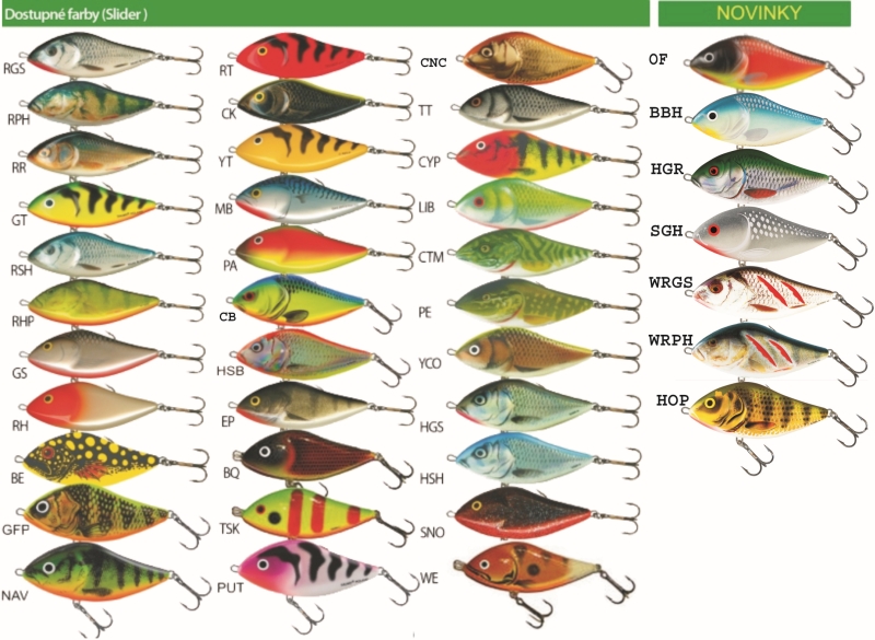 Salmo rybársky wobler SLIDER, je to vinikajúci wobler bez lopatky na lov rôznych druhov dravých rýb na rôznych typoch vôd. Wobler sa po nahodení poťahuje, jeho pohyb imituje zdochýňajúcu rybku. Vyrába sa ,ako potápavý alebo plávajúci.