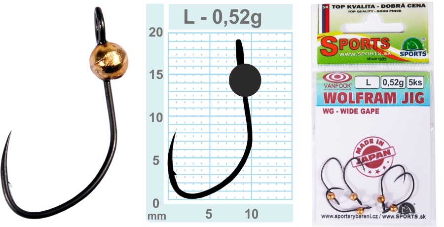 - Wolfram jigové hlavy 5ksJIG 0,52g s protihrotom -veľkosť L