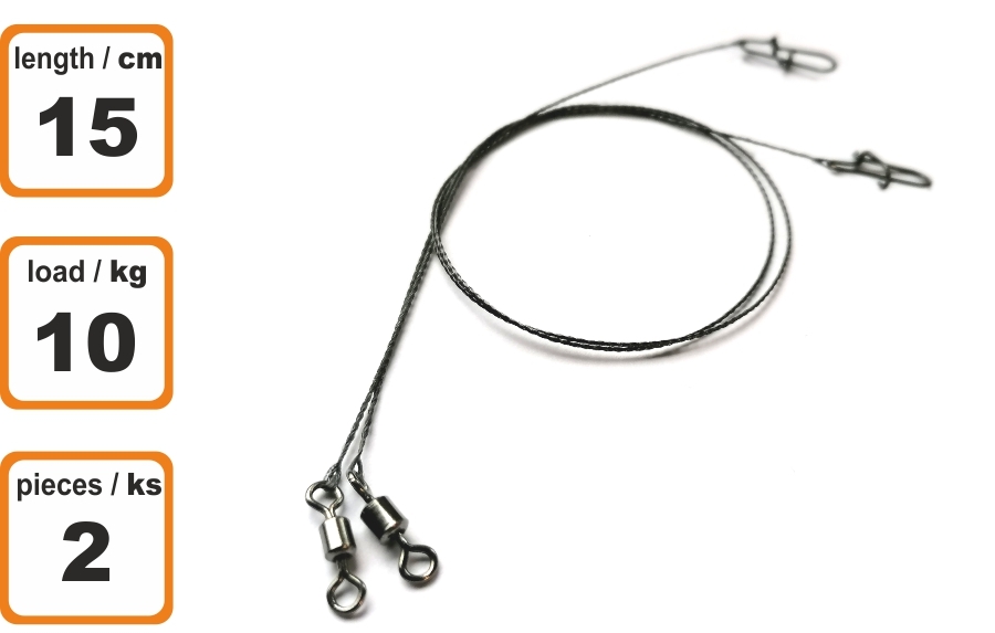 - Wolframové lanko 15cm/10kg/2ks