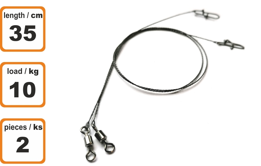 - ukončenie na druhej strany karabínkou – rýchla výmena nástrahy