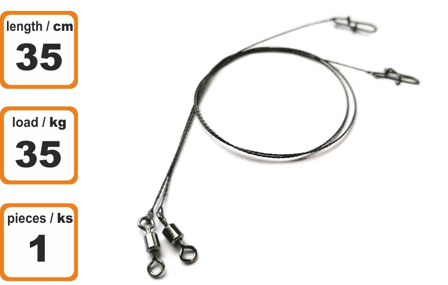 Wolframové lanko ponúka oproti oceľovému lanku prirodzenejšiu prezentáciou nástrahy. Kvalitné wolframové materiály zabezpečujú jemnosť, ohybnosť týchto lanka, ktoré nerobí žiadnu prekážku prirodzenému pohybu nástrahy. Navyše wolframový materiál má vysokú oteruodolnosť, odoláva prekusnutiu aj tým najostrejším zubom dravca. Lanko je na jednom konci ukončené obrtlíkom a na druhom karabínkou.