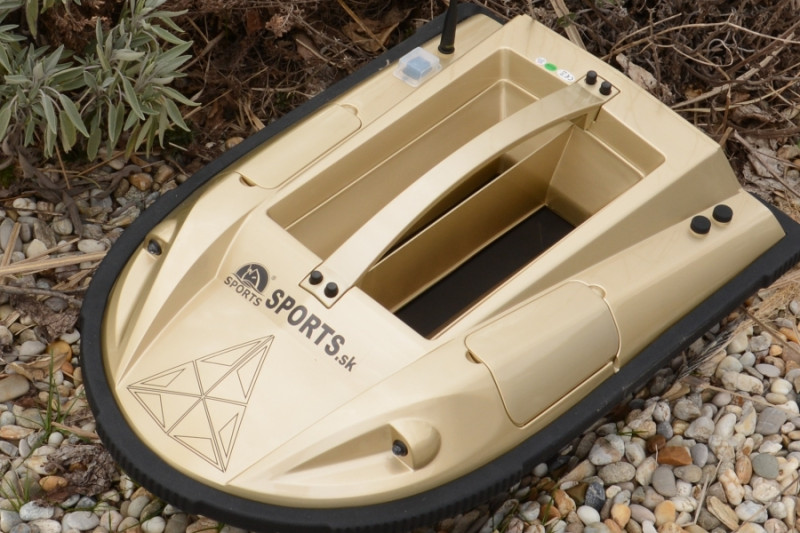 - Zavážacia loďka s možnosťou vyvážania dvoch montáží a krmiva v dvoch zásobníkoch na jazerách a riekach s manuálnym alebo automatickým ovládaním.