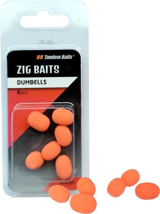 Zig - Dumbells sú valčekové plávajúce návnady z peny s vysokou hustotou a elasticitou (dĺžka 12mm). Dostatočne mäkké na nastraženie priamo na háčik alebo na vlasový prives spolu s pop-up boilies alebo inými kombináciami pre zatraktívnenie nástrahy. Ideálne pre plávajúce montáže tzv. snehuliakov, zig-rig a rig-rig. Môžu byť ochutené pomocou dipu alebo boostru pre maximálnu atraktívnosť vo vode. K dispozícii v niekoľkých farbách. Balenie obsahuje 6ks.