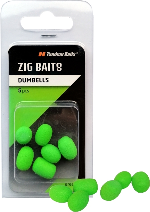 Zig - Dumbells sú valčekové plávajúce návnady z peny s vysokou hustotou a elasticitou (dĺžka 12mm). Dostatočne mäkké na nastraženie priamo na háčik alebo na vlasový prives spolu s pop-up boilies alebo inými kombináciami pre zatraktívnenie nástrahy. Ideálne pre plávajúce montáže tzv. snehuliakov, zig-rig a rig-rig. Môžu byť ochutené pomocou dipu alebo boostru pre maximálnu atraktívnosť vo vode. K dispozícii v niekoľkých farbách. Balenie obsahuje 6ks.